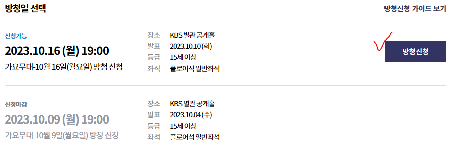 첫번째 방청일 먼저 선택해주세요! 날짜 꼭 확인하셔서 방청 신청을 해주세요.