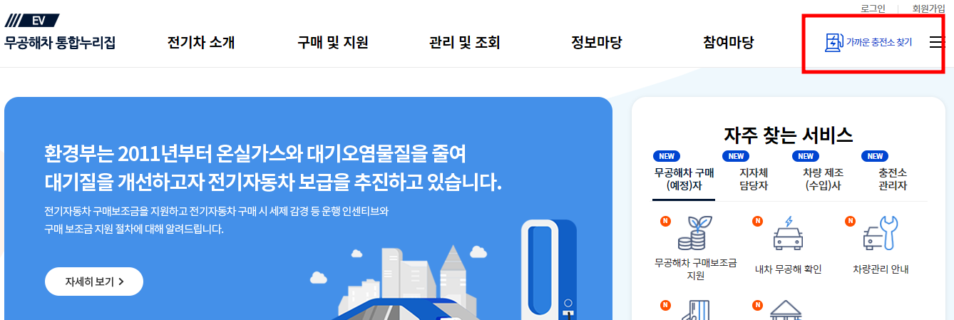 메인홈페이지에서 제일 우측 가까운 충전소 찾기로 가기