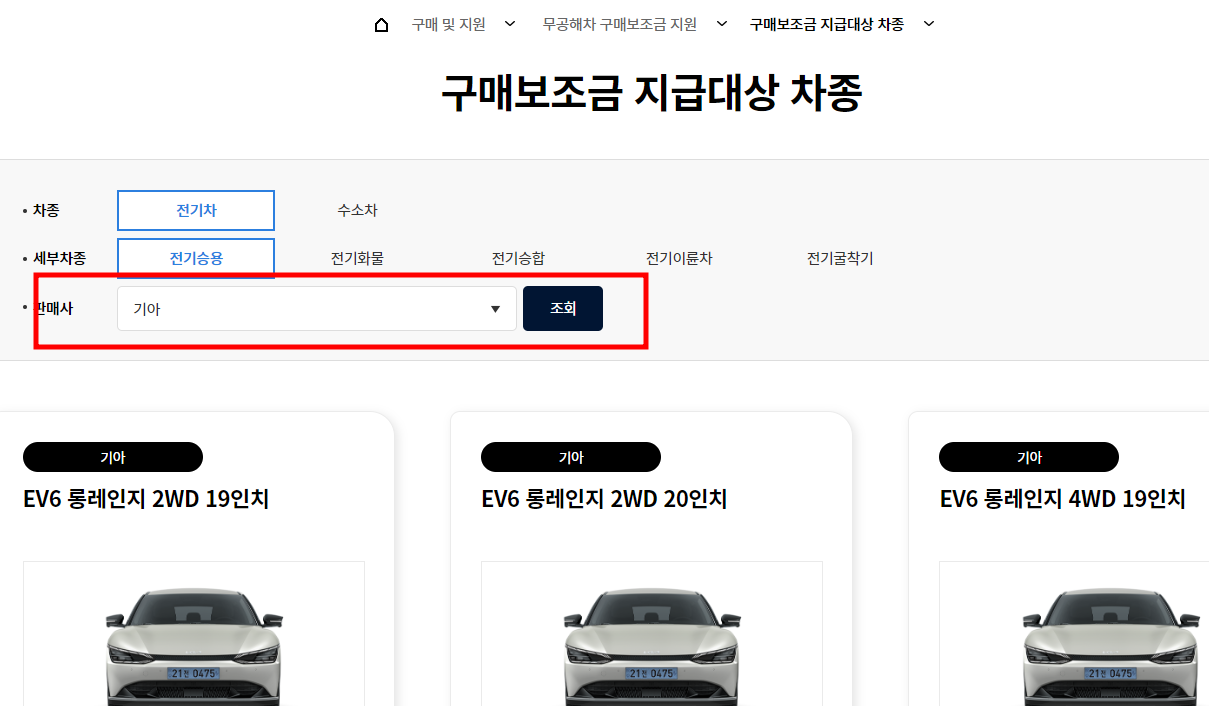구매보조금 지급대상 차종 확인하기