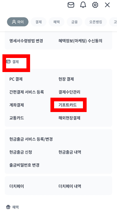 결제 > 기프트카드