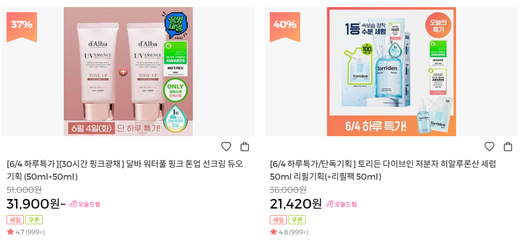 매일매일 새로운 상품이 파격적인 가격에 등장하는 오늘의 특가코너, 알고 계셨나요? 올리브영 세일 못지않게 인기있는 오늘의 특가인데요. 워낙 인기가 많아 올리브영에서 밀고있는 카테고리입니다.