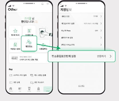 👉 본인인증방법: 스타벅스 앱 ▶ Other ▶ 계정정보 ▶ 탄소중립포인트제 설정